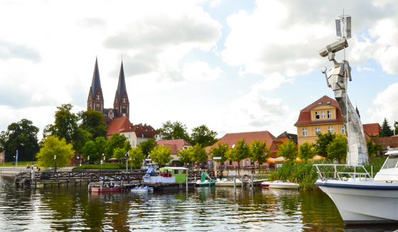 ![]() Lange bevor Sie Neuruppin erreichen, sehen Sie bei klarer Sicht die beiden Türme der Klosterkirche St. Trinitatis, ein Wahrzeichen dieser Stadt. Die Kirche des 1246 gegründeten ehemaligen Dominikanerklosters war vom großen Stadtbrand, das im Jahre 1787 in der Stadt wütete, verschont geblieben. |